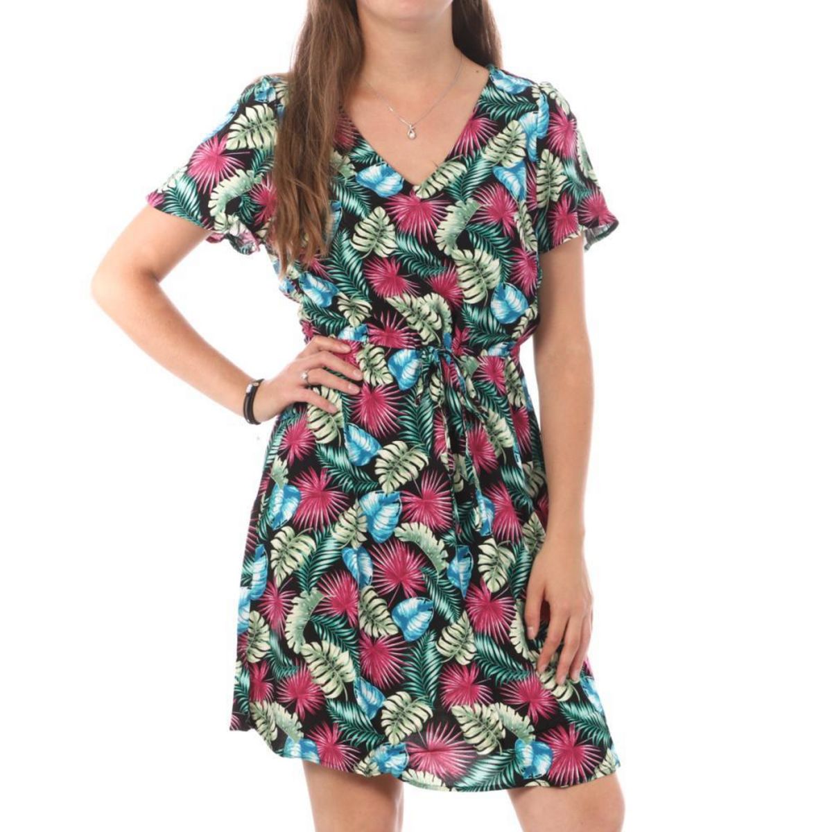 Craquez pour cette robe de la marque Vero Moda ! Coloris : noir, violet, vert, bleu Composition : 100% viscose Manches courtes Col V Motifs fleurs