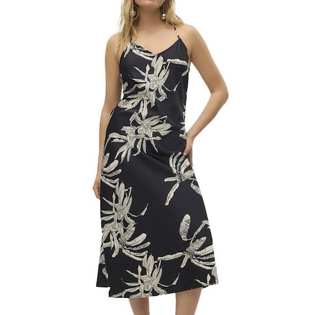 Optez pour cette robe Vero Moda à prix bas !Coloris : NoirMotifs imprimésComposition : 97% polyester, 3% élasthanneCol V Fines bretelles