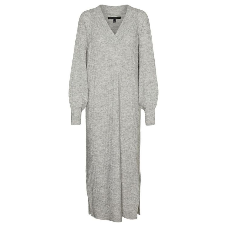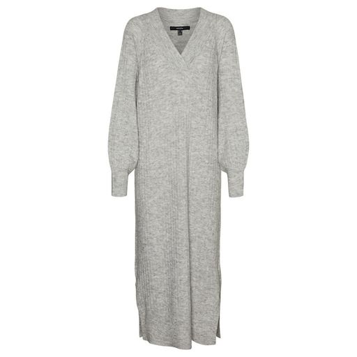 Craquez pour la robe femme Vero Moda !- Coloris : Gris- Col V- Manches longues- Coupe longue- Maille- Composition : 52 % polyester recyclé , 40 % acrylique , 5 % laine , 3 % d'élasthanne