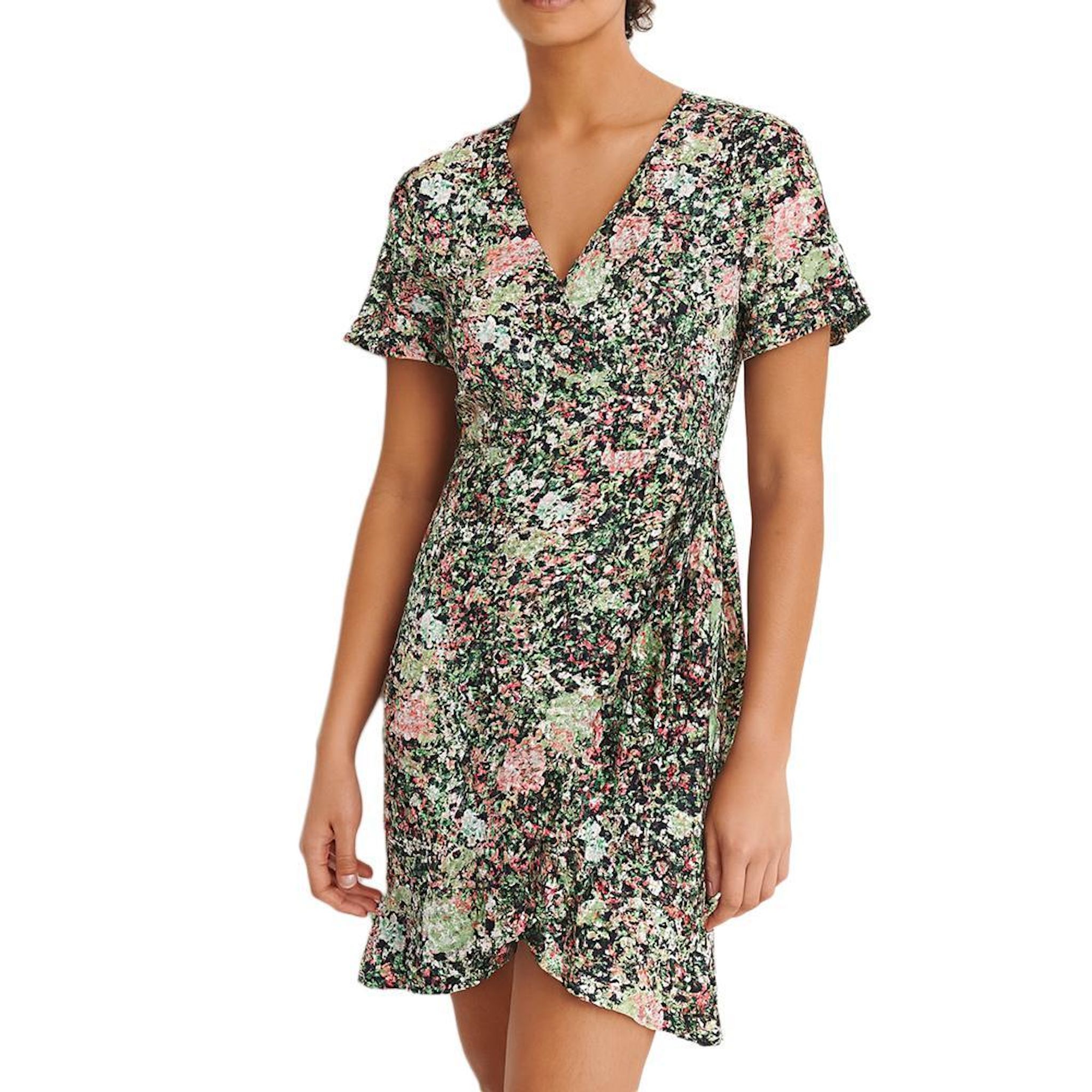 Optez pour cette robe Vero Moda à prix bas !Coloris : Noire/Rose Col V Manches courtesComposition : 100% polyester