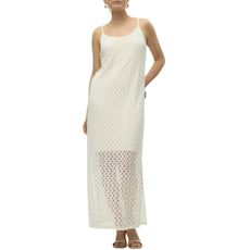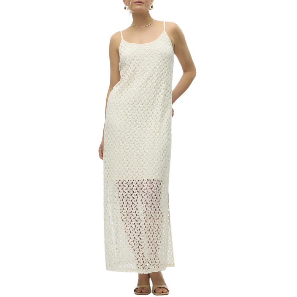 Optez pour la robe femme Vero Moda !- Coloris : Ecru- Bretelles- Col rond- Brodé- Doublure- Coupe longue- Composition : 85% polyester , 15% coton