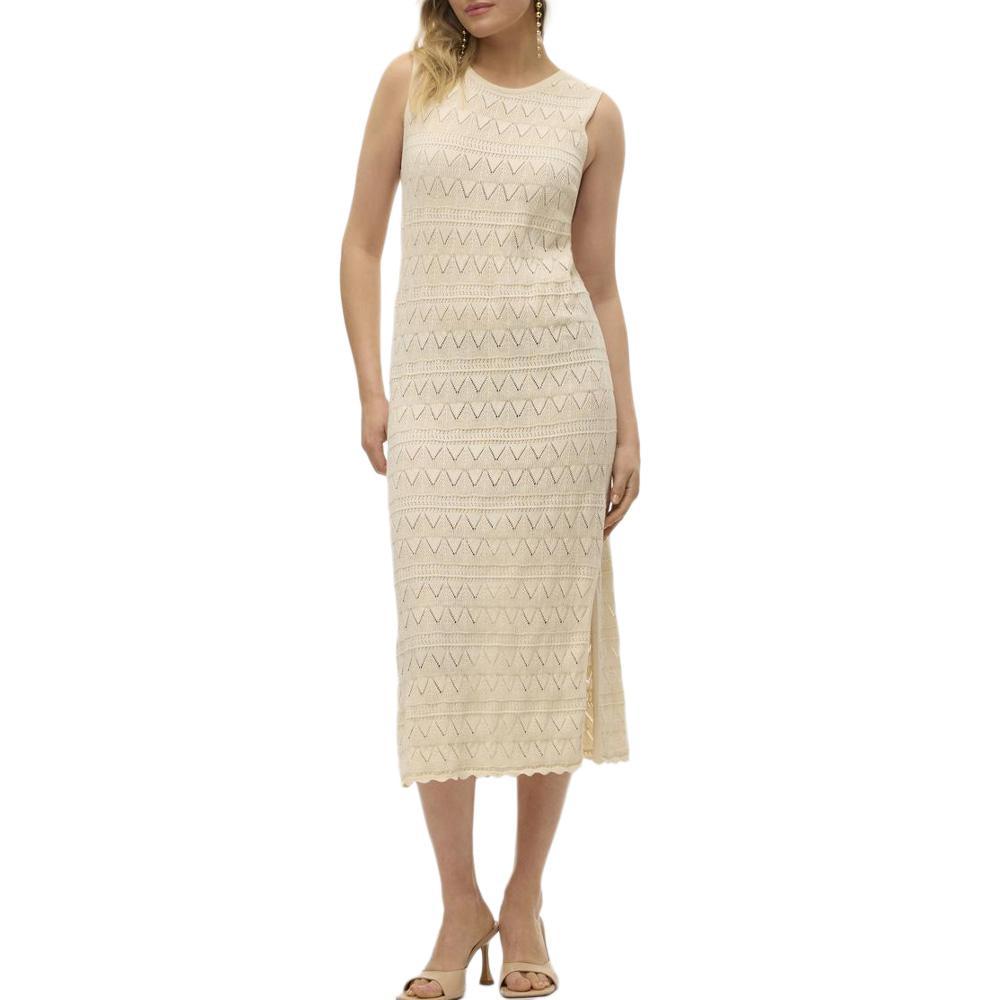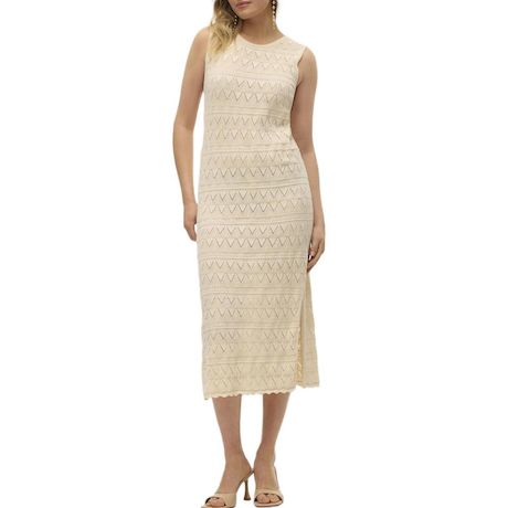Craquez pour la robe femme Vero Moda !- Coloris : Beige- Col rond- Tissu crochet- Coupe midi- Fente sur le bas- Sans manches- Composition : 100% coton