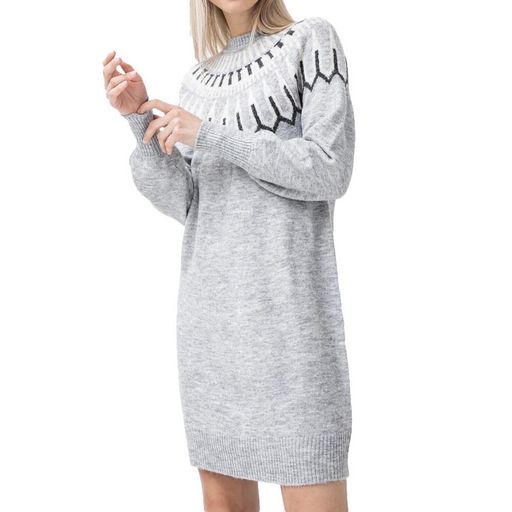 Optez pour cette robe Composition : 52 % polyester recyclé, 23 % acrylique, 16 % nylon, 6 % élasthanne, 3 % laineCol montantColoris : GrisMotifs imprimés