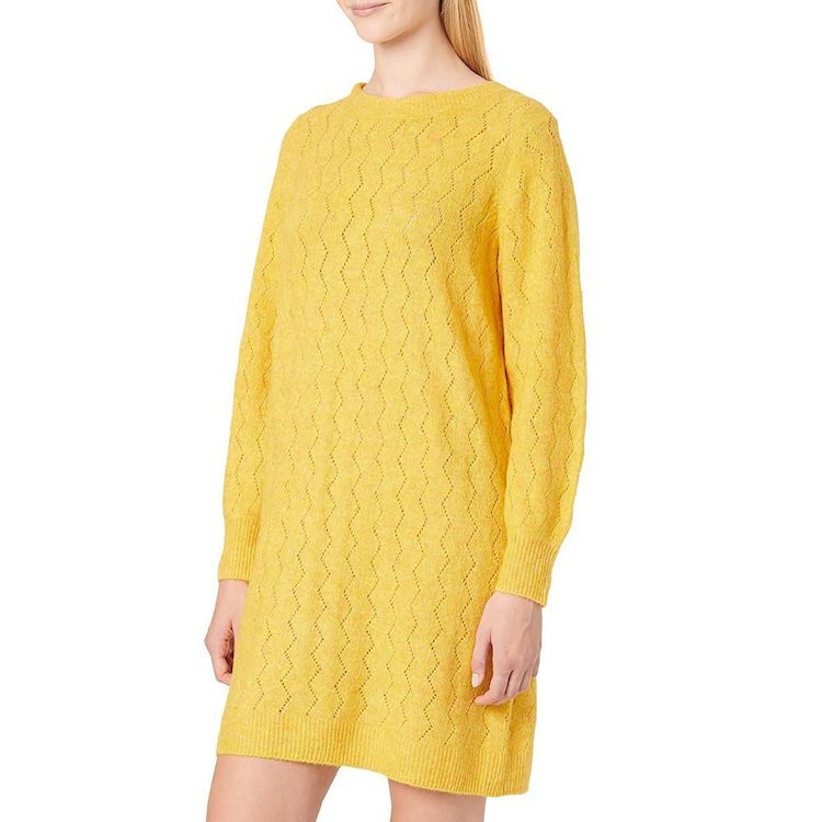 Robe en maille pour femme de la marque Vero Moda Manches longues Col rond Maille fine ajouré Coloris : Jaune Composition : 52% polyester , 41% acrylique , 4% laine , 3% élasthanne