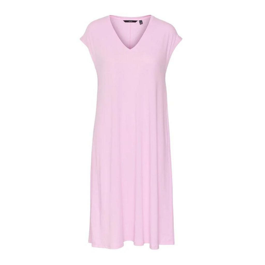 Optez pour cette robe de la marque Vero Moda ! Coloris : rose Manches courtes Col V Composition : 82% polyester 14% lin 4% élasthanne Relaxed Fit