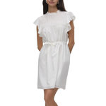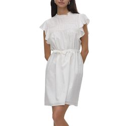Optez pour cette robe Vero ModaColoris : BlancManches courtesComposition : 100% cotonCol montantFermeture à l'arrièreDoublure, ceinture incluse