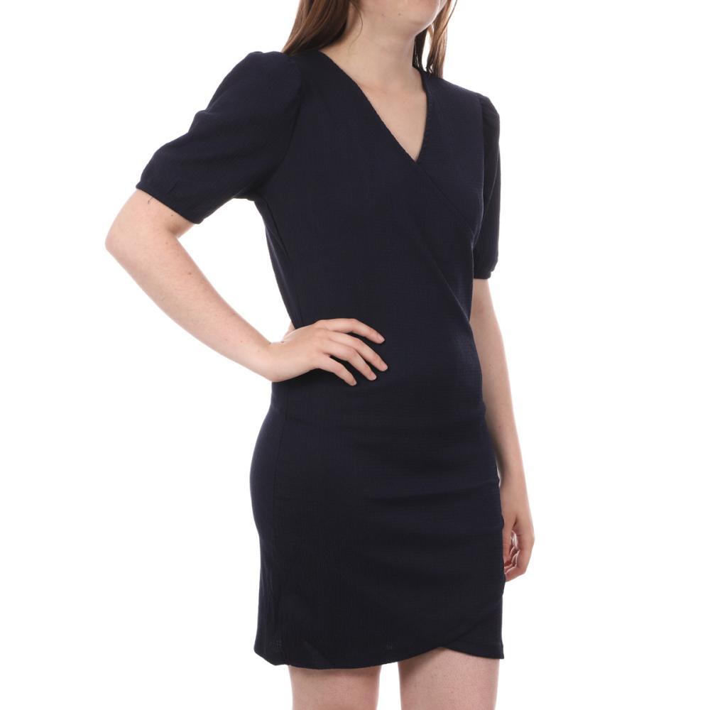 N'attendez plus pour commander cette robe tulipe pour femme de la marque Vero Moda ! Couleur : Marine Coupe tulipe Col cache-cœur Manches mi-longues semi bouffantes Motifs : Texturées Composition : 95% polyester & 5% élasthanne