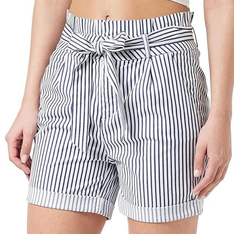 Optez pour ce short de la marque Vero ModaColoris : Blanc/MarineTaille hauteCeinture enveloppante à la taillePoches fendues à l'avantFausses poches à l'arrièreComposition : 50 % coton recyclé, 48 % coton, 2 % élasthanne