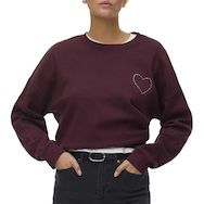 Craquez pour le sweat de la marque Vero Moda !- Coloris / bordeaux- Col rond- Manches longues- Logo Cœur strass- Composition : 52% coton biologique / 48% polyester recycle