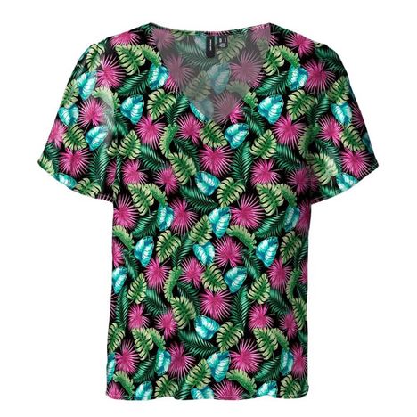 Craquez pour ce t-shirt de la marque Vero Moda ! Col V Manches courtes Composition : 100% viscose Coloris : Noir, vert, bleu, rose, blanc Motifs imprimés