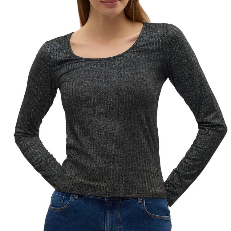 Optez pour ce t-shirt Vero ModaColoris : GrisCol rondManches longuesComposition : 60% Polyester recyclé 20% Viscose 13% Fibres métalliques 7% Élasthanne