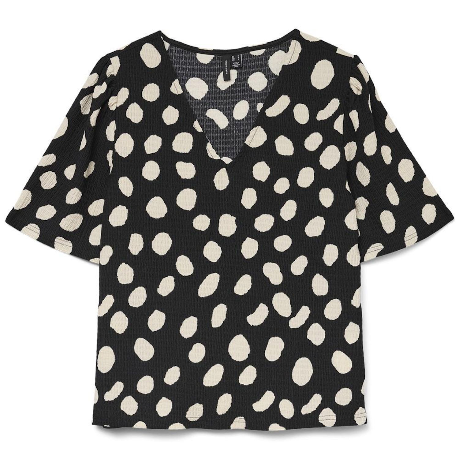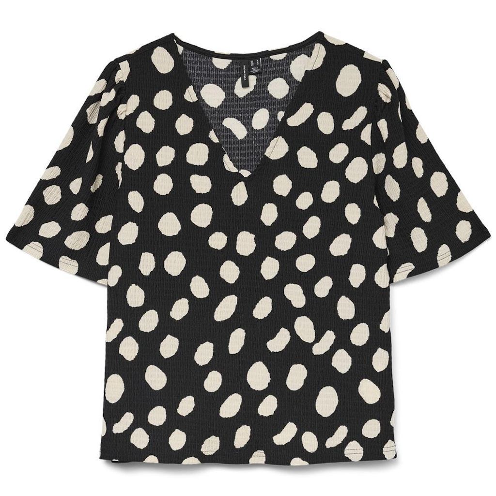 Optez pour ce t-shirt Vero Moda à prix bas !Coloris : Noir/BeigeCol V Manches courtesComposition : 97% Polyester recyclé 3% Élasthanne