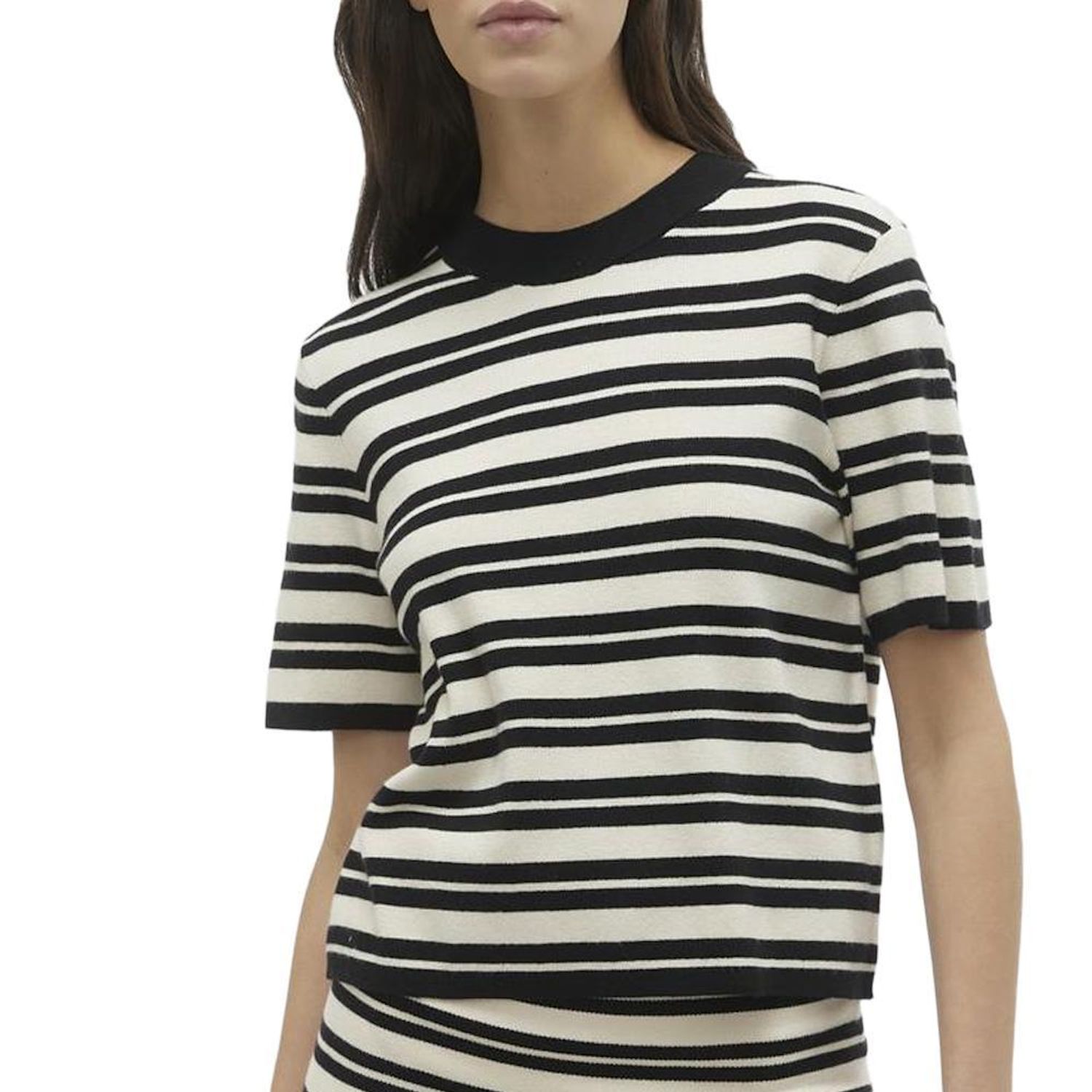 Optez pour ce t-shirt Vero ModaColoris : Beige/NoirCol rondManches courtesComposition : 50% viscose, 28% polyester, 22% nylon