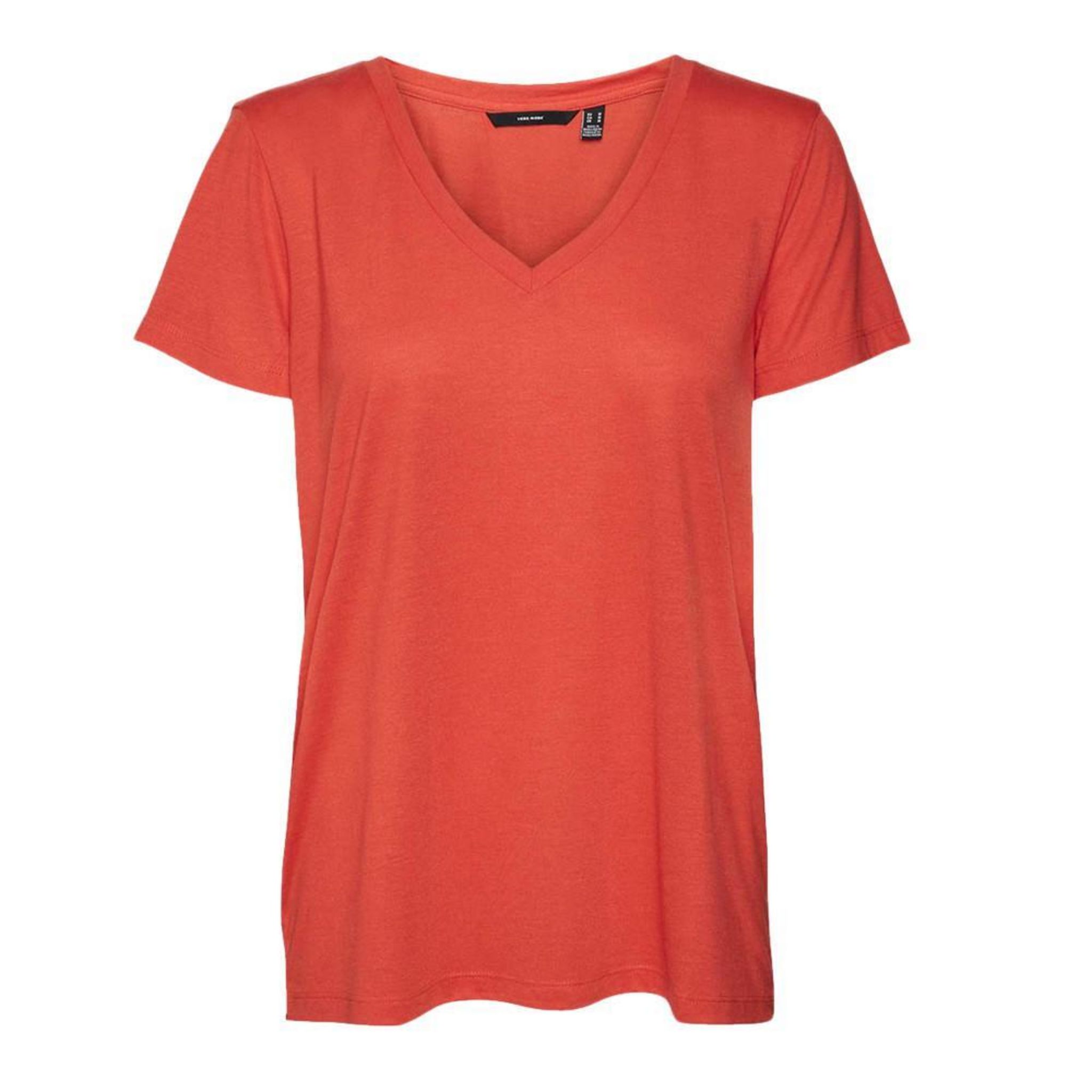 Découvrez le T-shirt femme de la marque VERO MODA ! Coloris : Corail Col V Manches courtes Composition : 65% Polyester 35% Viscose