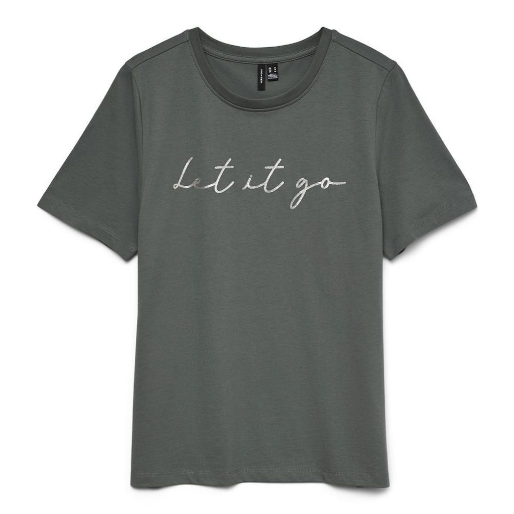 Optez pour le t-shirt femme Vero Moda !- Col rond- Manches courtes- Coloris : vert- Inscription sur l'avant- Composition : 50% coton , 50% polyester