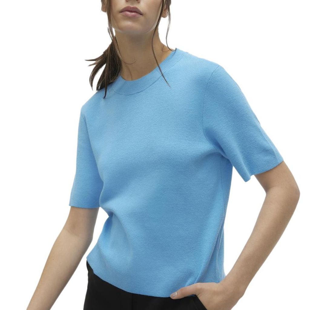 Optez pour ce t-shirt Vero ModaColoris : Bleu Col rondManches courtesComposition : 50% viscose, 28% polyester, 22% nylon
