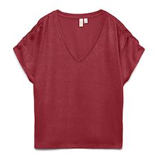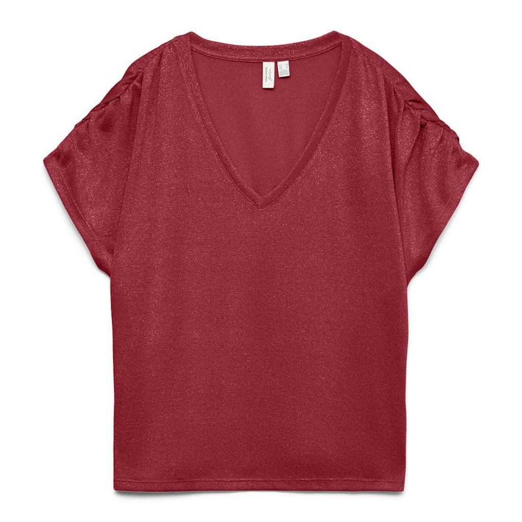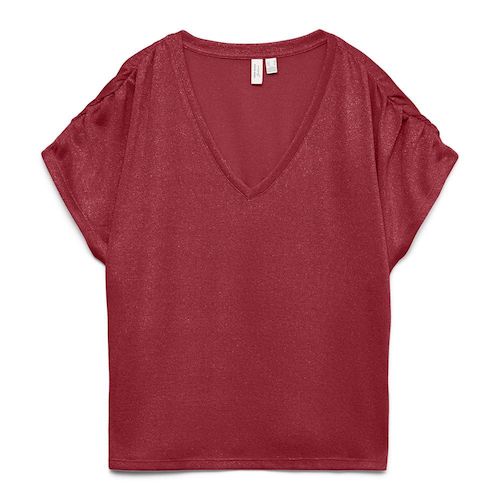Craquez pour le t-shirt de la marque VERO MODA !- Coloris : Rouge- Col V- Manches courtes- Composition : 75% viscose, 15% polyester, 10% métallique
