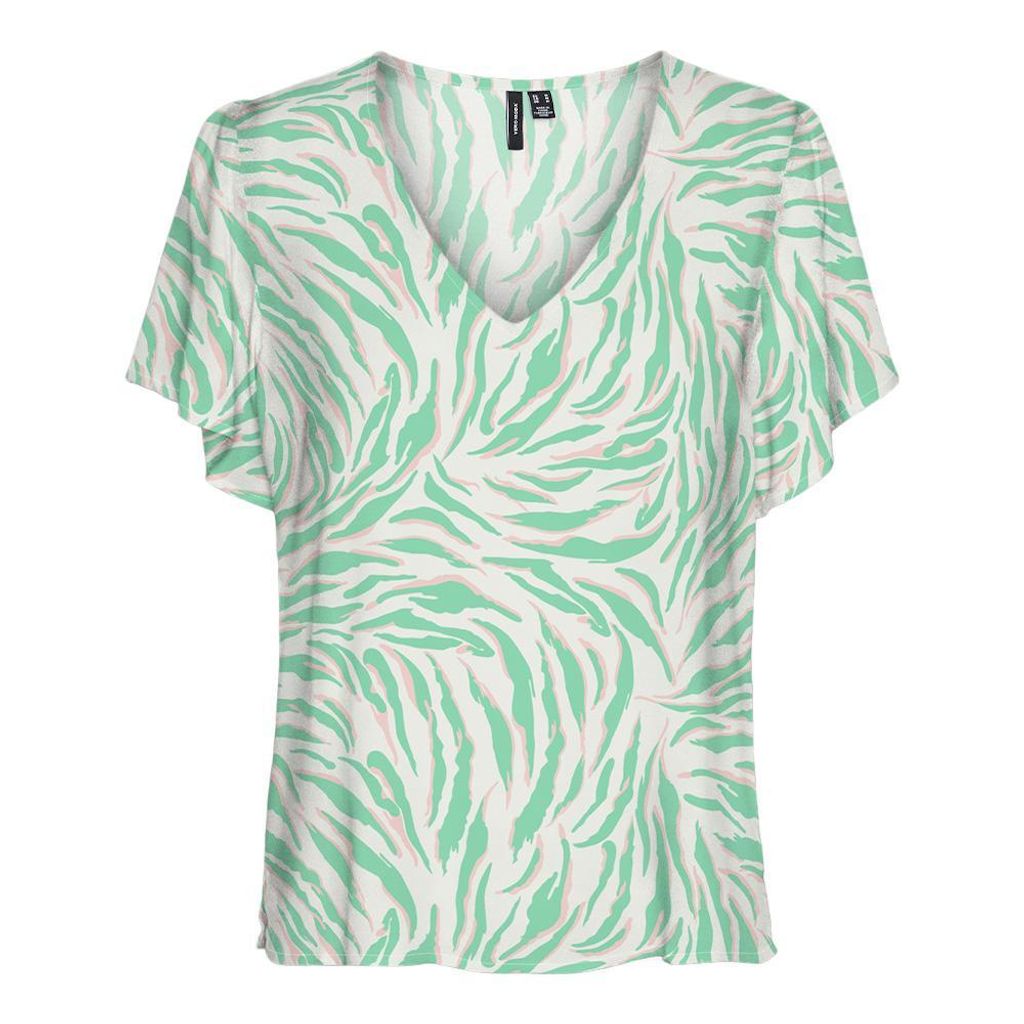 Craquez pour le t-shirt de la marque Vero Moda !Coloris : Vert Col v Manches courtes Tissu imprimé Composition : 100% Viscose