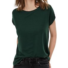 T-shirt Basic de la marque AWARE by Vero Moda Coloris : Vert FoncéManches courtes Col rond Encolure ronde avec côtesPlié aux manchesQualité douce et extensibleCoupe AmpleColoris uni 95% Lyocell, 5% élasthanne