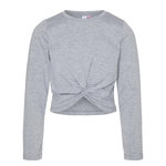 Craquez pour le t-shirt de la marque VERO MODA GIRL !Coloris : Gris Col rond Manches longues Noué sur l'avant Composition : 65% coton, 30% Polyester, 5% Élasthanne