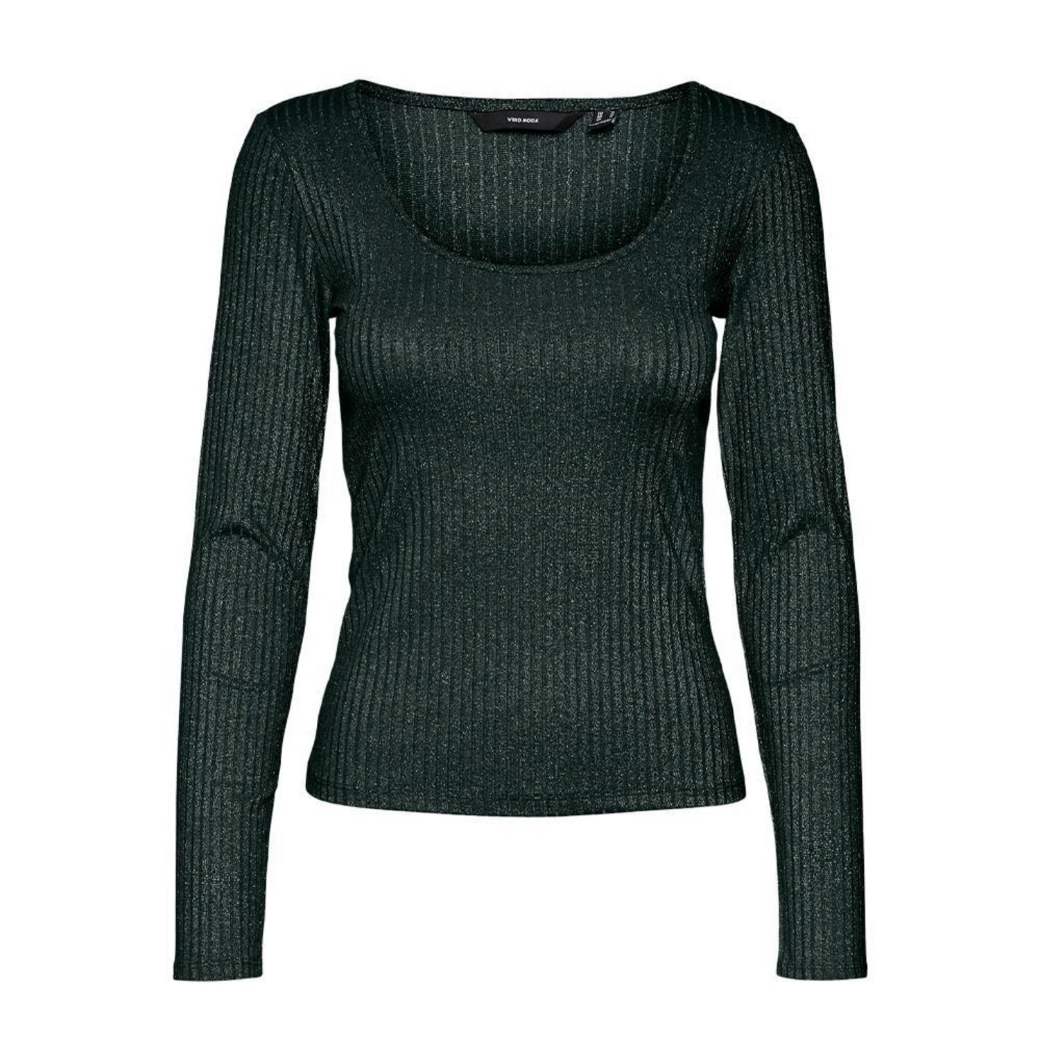 Optez pour ce t-shirt Vero ModaColoris : GrisCol rondManches longuesComposition : 60% Polyester recyclé 20% Viscose 13% Fibres métalliques 7% Élasthanne