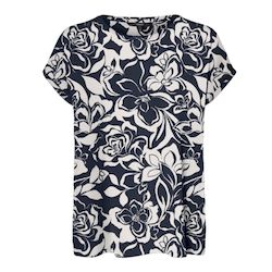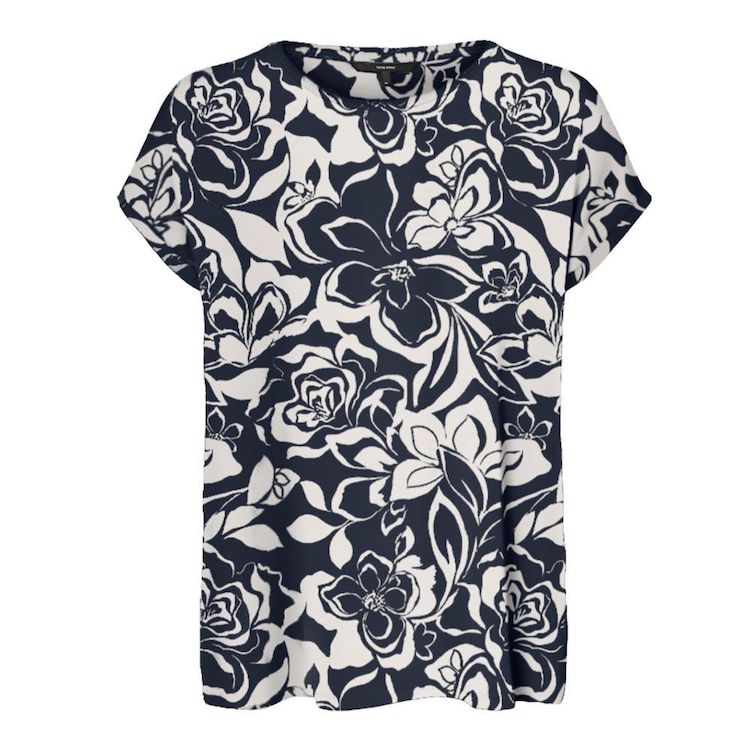 Optez pour ce t-shirt Vero Moda- Coloris : Marine/Blanc- Col rond- Manches courtes- Composition : 95% Lyocell - 5% elasthanne