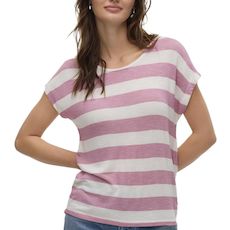 Craquez pour le t-shirt de la marque VERO MODA !Coloris : Rose/BlancCol rondManches courtesRayuresComposition : 96 % viscose,4% élasthanne
