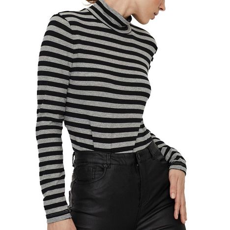 Optez pour le top femme de la marque Vero Moda Manches longues Col montant Coloris : Gris/Noir Rayures Tissu léger Composition : 62% polyester , 33% viscose , 5% élasthanne
