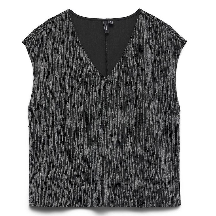 Optez pour ce top Vero Moda à prix bas !Coloris : NoirCol V Sans manchesComposition : 70% Polyester - Recycled, 25% Metallic Fibres, 5% Elastane