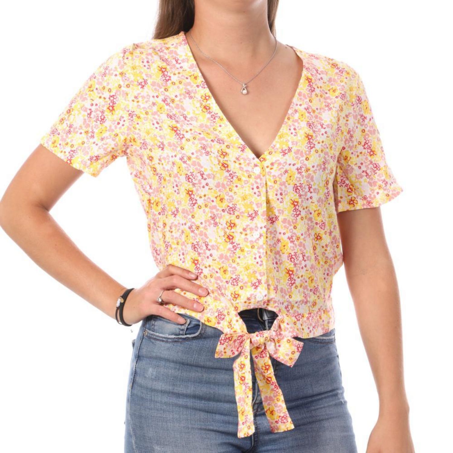 Craquez pour le top de la marque VERO MODA ! Coloris : rose, jaune Col V Manches courtes Imprimé en intégralité Composition : 100% Viscose