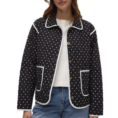 Veste femme de la marque Vero Moda !Manches longuesFermeture à boutonsColoris : Noir Imprimé à pois2 pochesComposition : 100% polyester