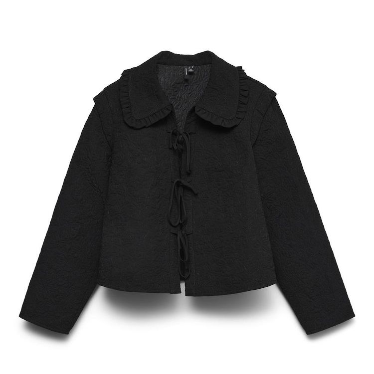 Optez pour la veste femme Vero Moda Jane !Coloris : NoirManches longuesFermeture avec liensTissu brodéComposition : 100% polyester