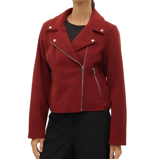 Découvrez la veste de la marque VERO MODA !Coloris : Rouge Veste biker aspect suédine tendanceFermeture par zip asymétriquePoches latérales zippéesComposition : 90% Polyester 10% Elasthanne