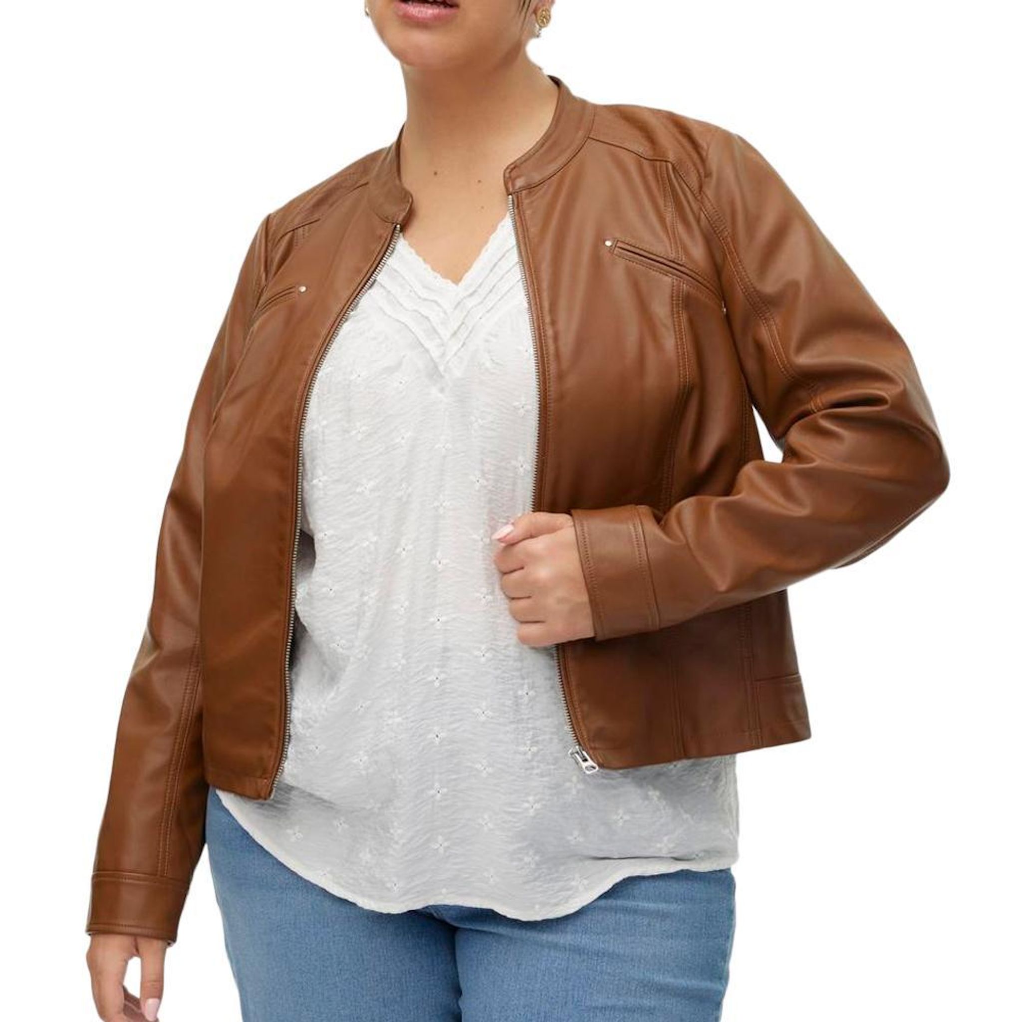 Optez pour la veste femme Vero Moda !Manches longuesCol motardColoris : Camel SimilicuirFermeture à zip4 pochesComposition : 100% viscose