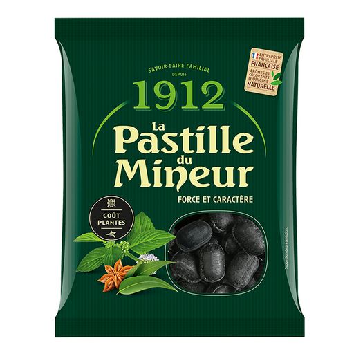 Sirop de glucose, sucre, extraits de plantes, arôme naturel, colorant : charbon végétal médicinal, agent d'enrobage : cire de carnauba.