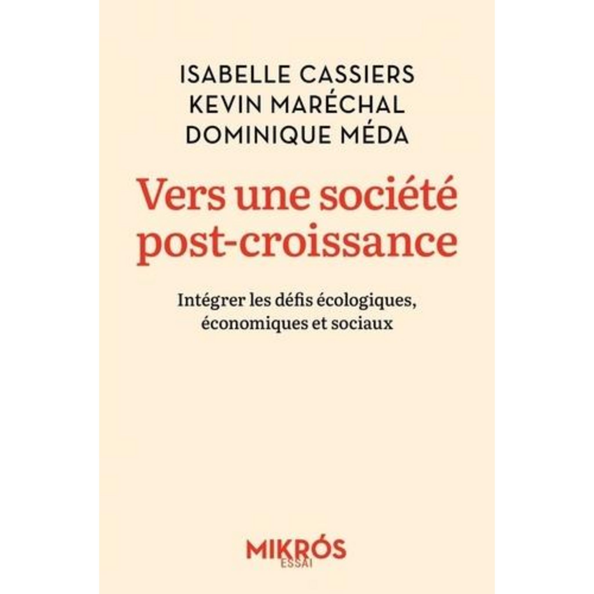 VERS UNE SOCIETE POST-CROISSANCE. INTEGRER LES DEFIS ECOLOGIQUES, ECONOMIQUES ET SOCIAUX, Cassiers Isabelle