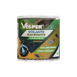 VESPER® FUMIGATEUR VOLANTS RAMPANTS est un produit insecticide facile d'utilisation, pour le contrôle des insectes rampants et volants (puces, blattes, mites alimentaires, mites des vêtements...) dans les habitations résidentielles. Sa technologie innovante (pas de gaz propulseur, pas de feu, pas de mèche) pénètre dans toutes les fissures et crevasses.
