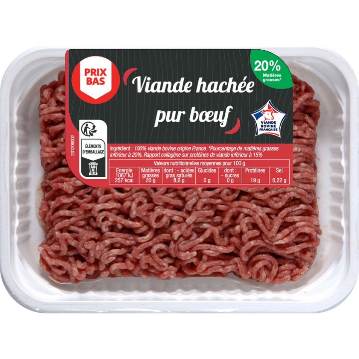 Ingrédients : Ingrédient : 100% viande bovine origine France.