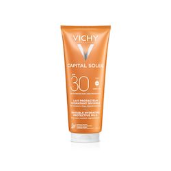 [Cet avis a été recueilli en réponse à une offre.] Vichy capital soleil lait protecteur SPF30 300 ml est un lait hydratant invisible qui offre une haute protection solaire pour le visage et le corp très résistant à l'eau il protège la peau contre les rayons UV au niveau cellulaire hypoallergenique et fabriqué en France texture liquide en format tube de 300 ml elle est composée d'eau, palmitate d'isopropyle alcool dénaturé ,salicylate d'éthyle yle, acetate d'amidon oxydé bn et gomme xanthane ect parfum frangrance