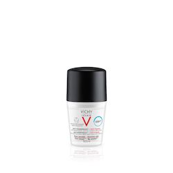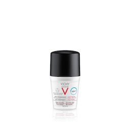 [Cet avis a été recueilli en réponse à une offre.] J’utilise ce déodorant Vichy depuis plusieurs semaines et j’en suis vraiment satisfait. Il est très efficace contre la transpiration, même lors de journées chaudes ou après le sport. Le format roll-on est pratique et l’application se fait en douceur, sans coller ni laisser de sensation désagréable. Un gros plus : aucune trace sur les vêtements, ni blanches ni jaunes, même sur les tissus foncés ! Il est aussi parfait pour les peaux sensibles, car il ne provoque aucune irritation, même après le rasage. L’odeur est discrète et agréable, pas trop forte, ce qui est appréciable pour ne pas interférer avec un parfum. Bref, un produit fiable, de qualité, que je recommande sans hésiter !