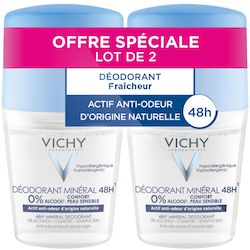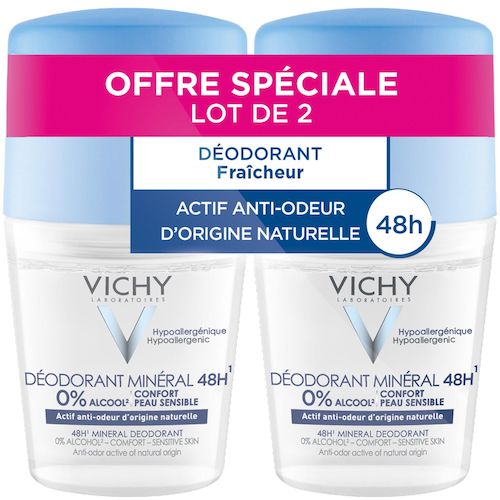 Association du gluconate de zinc et des 15 minéraux de l'eau minéralisante de Vichy pour une efficacité anti-odeur jusqu’à 48h, à la Provitamine B5 apaisante. Non Applicable.