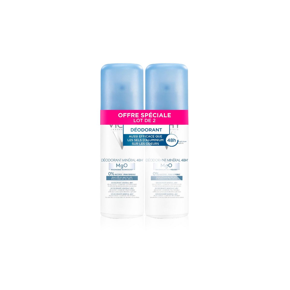 DéodorantAérosolMinéralefficacité 48hactif d'origine naturelleLot 2hypoallergénique