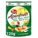 L'Apérifruits L'exotique c'est un mélange de raisins, d'ananas, de papaye, de bananes et de noix de coco.