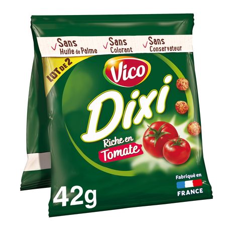 Dixi , c'est une boule de maïs soufflé croustillante et un goût de tomate intense et irrésistible ! Connaissez-vous le secret de sa saveur incomparable ? - Des ingrédients soigneusement sélectionnés - Une huile 100% tournesol - Une fabrication sans colorant ni conservateur.