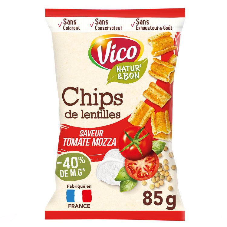Retrouvez tout le plaisir de vos biscuits apéritifs favoris avec la gamme "chips de lentilles"; des biscuits soufflés à base de lentilles, 40% moins gras que les chips classiques, à la texture légère et croustillante pour de délicieux moments à partager. Idéal pour une petite faim dans la journée ou un apéritif entre amis.