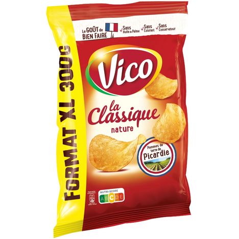 chips de pomme de terre Fabriquées en France avec de bonnes pommes de terre depuis plus de 50 ans, les chips La Classique de Vico sont toujours aussi croustillantes, finement dorées à l’huile de tournesol.
