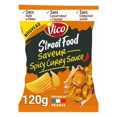 Nouvelles chips Vico Curry, savourez la street food du monde entier dans des chips au goût intense, et très croustillantes ! Sensations fortes garanties ! Une recette sans huile de palme, sans colorant, sans conservateur, sans exhausteur de goût. Produites en France dans l'usine VICO de Vic-sur-Aisne, à partir de pommes de terre françaises !