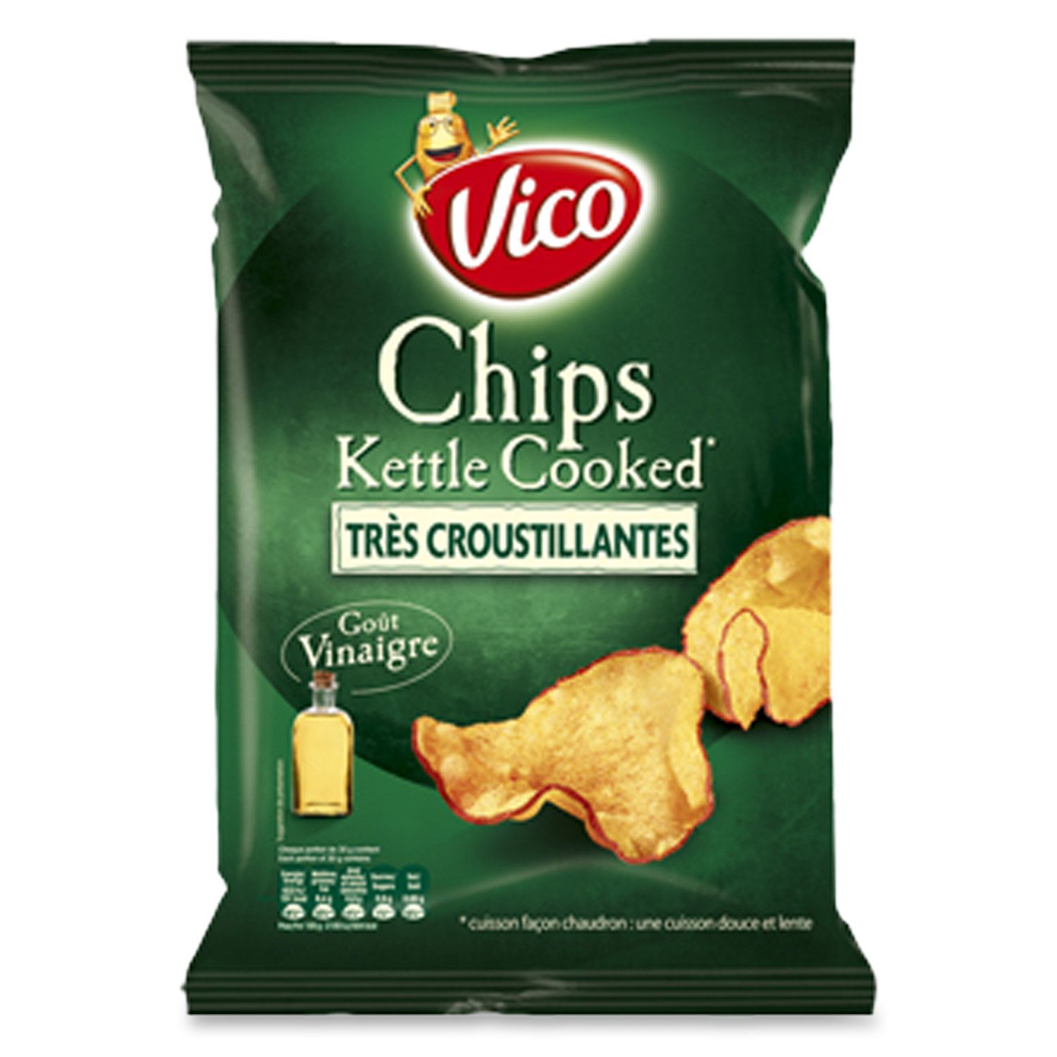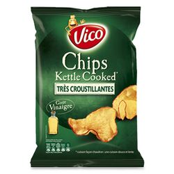 Les Chips Kettle Cooked* de Vico sont des chips dorées aux courbes généreuses. Découvrez-les dans une version arômatisée aux puissants arômes de vinaigre balsamique et chutney d'oignons rouges. Leur coupe épaisse avec peau, ainsi que leur cuisson douce et lente, assurent une texture très croustillante ! *Cuisson façon chaudron : une cuisson douce et lente Chips de Pomme de Terre au saveur vinaigre balsamique et oignons