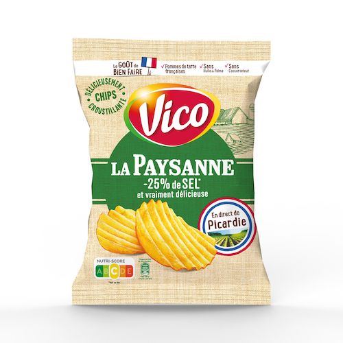 Craquez pour les chips ondulées Vico La Paysanne -25% de sel (par rapport au chips tradition nature du marché) et vraiment délicieuses ! Des chips croustillantes fabriquées à Vic-sur-Aisne en Picardie avec des pommes de terre 100% françaises ! Un vrai plaisir authentique à partager !