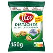 Laissez vous tenter par les pistaches VICO au sel de Guérande ! Gourmandes, bien ouvertes et délicatement grillées pour des apéritifs réussis ! Un grillage à sec, sans aucun ajout de matières grasses, pour encore plus de plaisir. Grâce à leur emballage protecteur, la saveur naturelle et le croquant des ingrédients sont préservés.